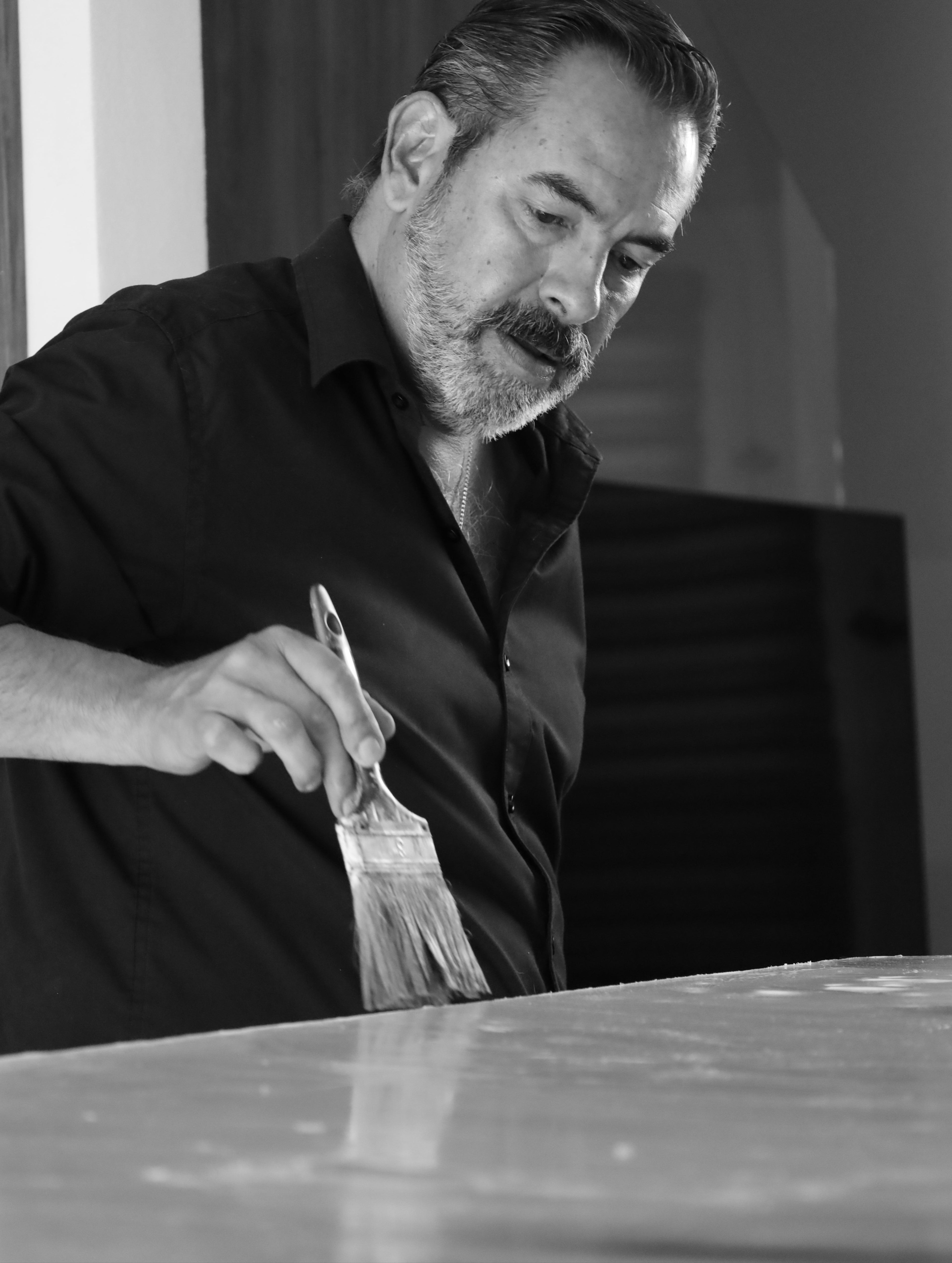 Artista que trasciende la técnica para tocar lo intangible. Su pintura abstracta nace del diálogo entre el color y la emoción, utilizando materiales como arenas y pigmentos naturales que aportan textura y profundidad a cada obra.